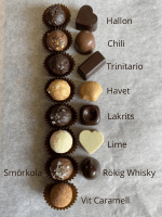 - Välj till en presentask, annars packas pralinerna i påse. Fraktlåda ingår i priset.